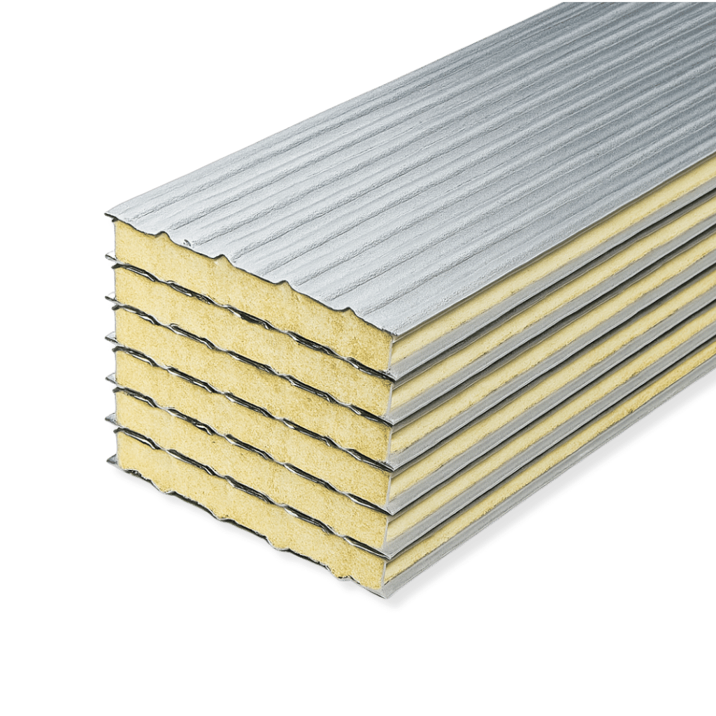 Pannelli sandwich con anima isolante e rivestimento in lamiera zincata. Garantisce isolamento termico e acustico elevato, ideale per coperture e pareti di capannoni, magazzini e strutture industriali.